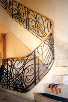 Main courante style art nouveau Escalier en chêne Louis XIII. pourquoi faire simple En merisier français. Balustre découpé et cintré quand on peut faire compliqué.