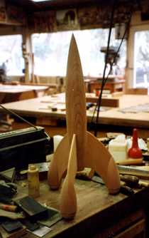 Une fusée Tintin pour Etienne Desthuilliers reconnaît avoir perdu pas mal de marchés car bon nombre de ses collègues ont préféré choisir la voie d'un travail plutôt moyen, pour un produit banal et pas trop cher. Le temps ne leur a pas donné raison. Il les a vu, un à un, déposer le bilan. Il a ainsi vu disparaitre ceux qui proclamaient haut et fort qu'ils régimenteraient seuls la profession et son marché. Il reconnaît aussi avoir toujours été intransigeant sur la qualité des ouvrages sortis de son atelier. Son argumentation commerciale a toujours reposé sur l'écoute des critiques, assortie de l'aveu d'un caractére entier, de la reconnaissance du niveau de prix, garantie d'un travail bien fait, très bien fait, un produit de luxe. Une première question peut être de savoir dans quelle mesure une éducation artisane du genre que celle que notre père nous a apportée a eu le cas échéant un impact sur la manière avec laquelle ses six autres enfants ont pratiqué leurs propres métiers. Je ne peux répondre ici que pour moi. D'autant que notre père étant mort relativement jeune, les trois derniers de la fratrie n'ont pas été immergés aussi longtemps que les quatre premiers dans cette ambiance "tout menuiserie" que mon frère Etienne et moi avons partagée. A vingt-huit ans, fort de mes cinq années d'expérience professionnelle comme ingénieur, je dirigeais un laboratoire d'essais et mesures dans une entreprise internationale de construction d'équipements de freinage. C'est aussi l'époque oû une fois par mois j'allais déjeuner avec mon père, dans un restaurant proche de Meaux, oû il venait présider les sessions du tribunal de commerce. Il ne se préoccupait pas des produits élaborés dans mon service, mais se montrait curieux de savoir comment je m'y prenais pour diriger des techniciens et des ouvriers professionnels bien plus âgés et expérimentés que moi. Et lorsque je lui eus dit qu'il m'arrivait non pas de donner un ordre, ou d'envisager une réprimande, mais de montrer ce que voulais obtenir en complétant à la planche les études de mon projeteur ou en utilisant mes propres outils pour faire une démonstration pratique, il n'en était point choqué. En effet, il pouvait identifier, d'après ma description, une démarche de maître artisan. Mon activité d'écriture elle-même est construite à partir de processus d'esprit artisanal.